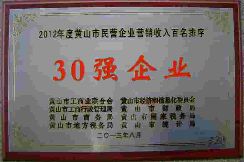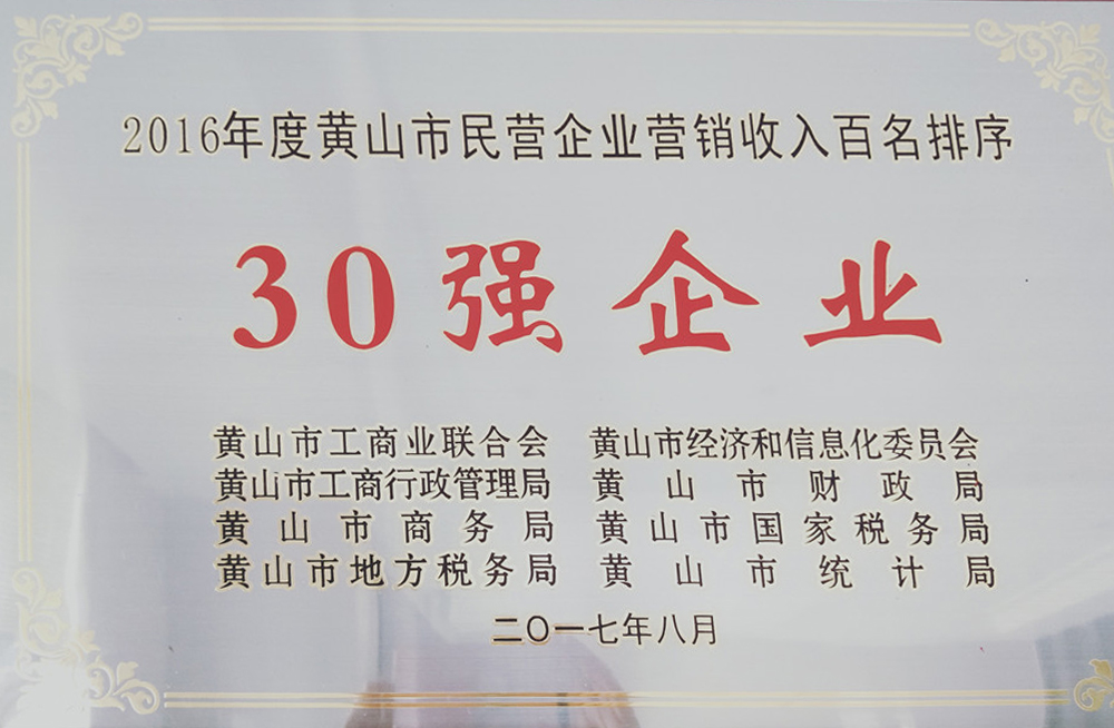 2016年黃山市民營企業(yè)營銷收入30強(qiáng)