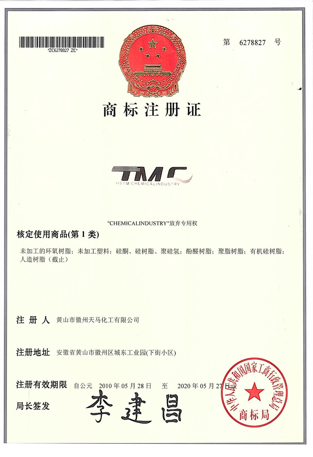 2010年注冊天馬TMC商標(biāo)