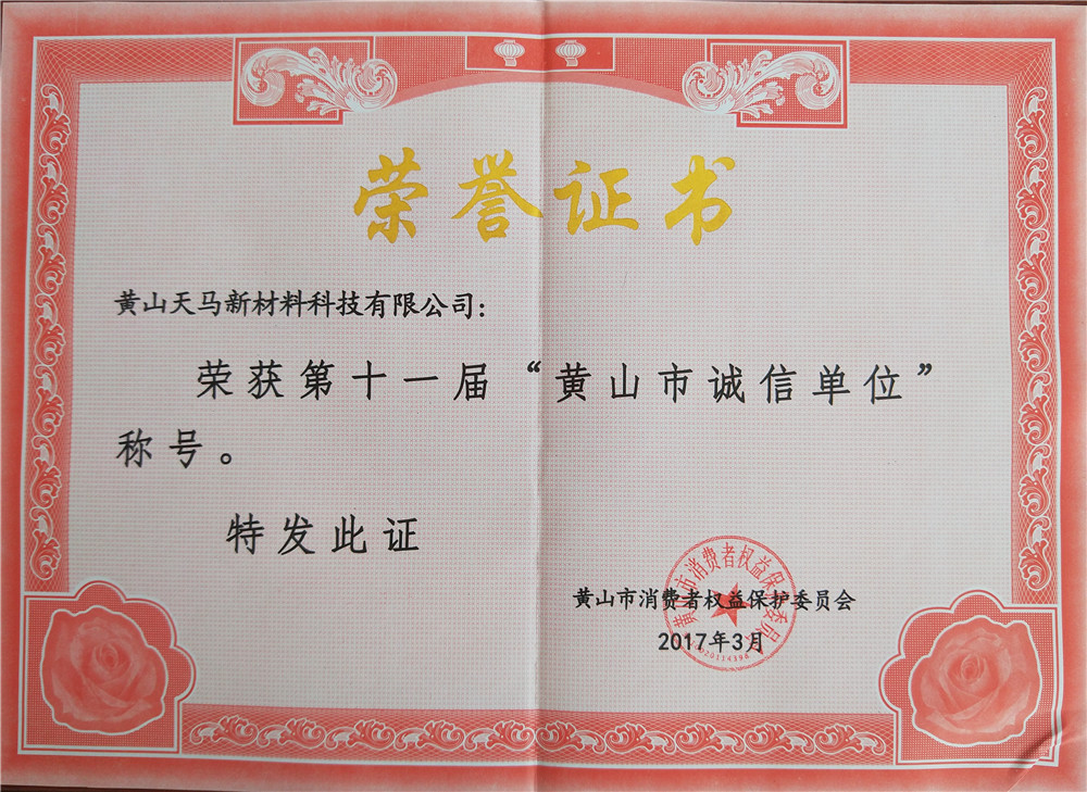 2017年黃山市第十屆“誠信單位”